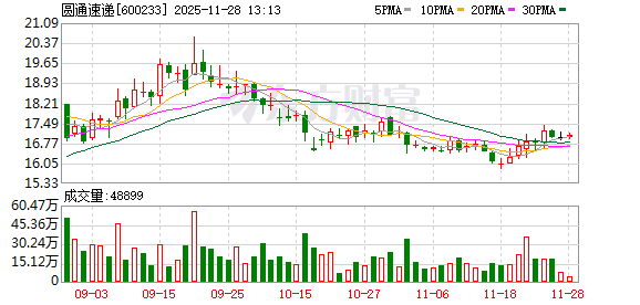 2025年11月27日,圆通速递发生了两笔大宗交易,总成交2000万股,成交金额3.19亿元,成交均价为15.97元。当日收盘价为16.99元,涨幅为0%,成交金额为1.36亿元