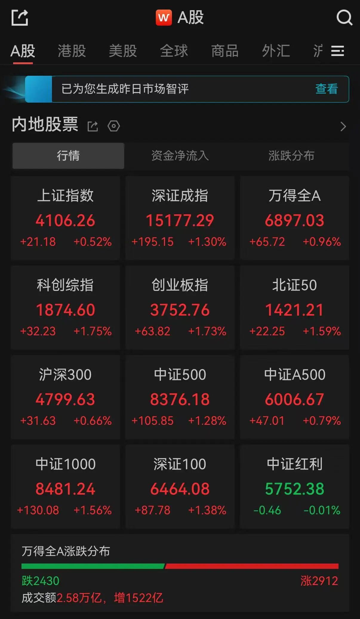 A股收评:超2900只个股飘红,三大指数集体收涨,沪指重回4100点